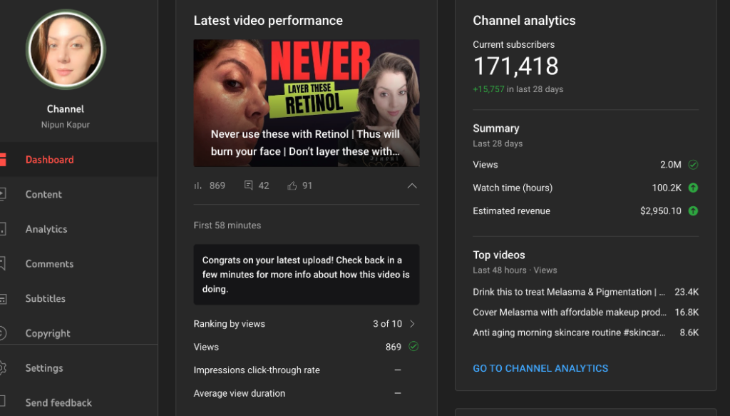 We analyse your channel performance and present detailed information that helps you understand your viewers, and make financial projections based on the comments and likes you’ve collected so far.